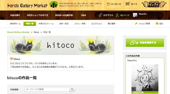ハンズギャラリーマーケットのウェブ版が4月から開店しました。