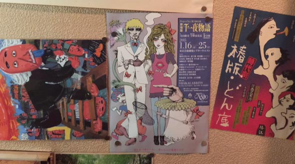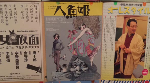 コンパクトな店内にはところせましと演劇系のポスターがたくさん貼られています。