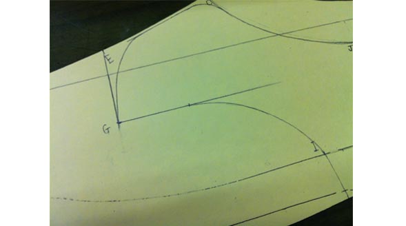 AとBの間に平行線をひき、そこから35ミリ下がったところに、アールをとり、ポイントIにつなげ… と、算数の授業のようです。