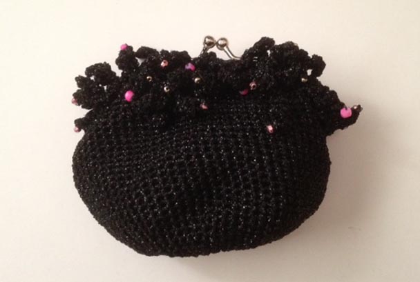 黒いラメラメボディにピンクのビーズがかわゆいです。