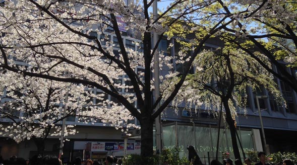 いつの間にか奥のしだれ桜は葉桜になっておりますが、桜はちょうど今が満開のようです。