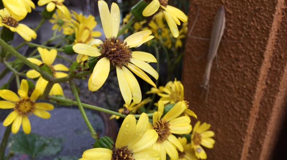 自宅の玄関先に植えてある、ツワブキが満開になりました。