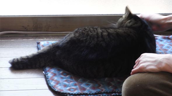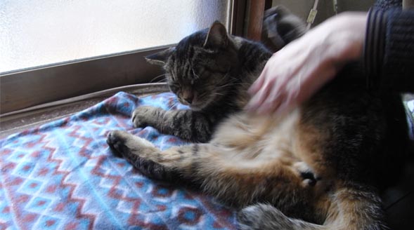 ↓一通りなでてもらって、缶詰待ちをしているちびちゃん
