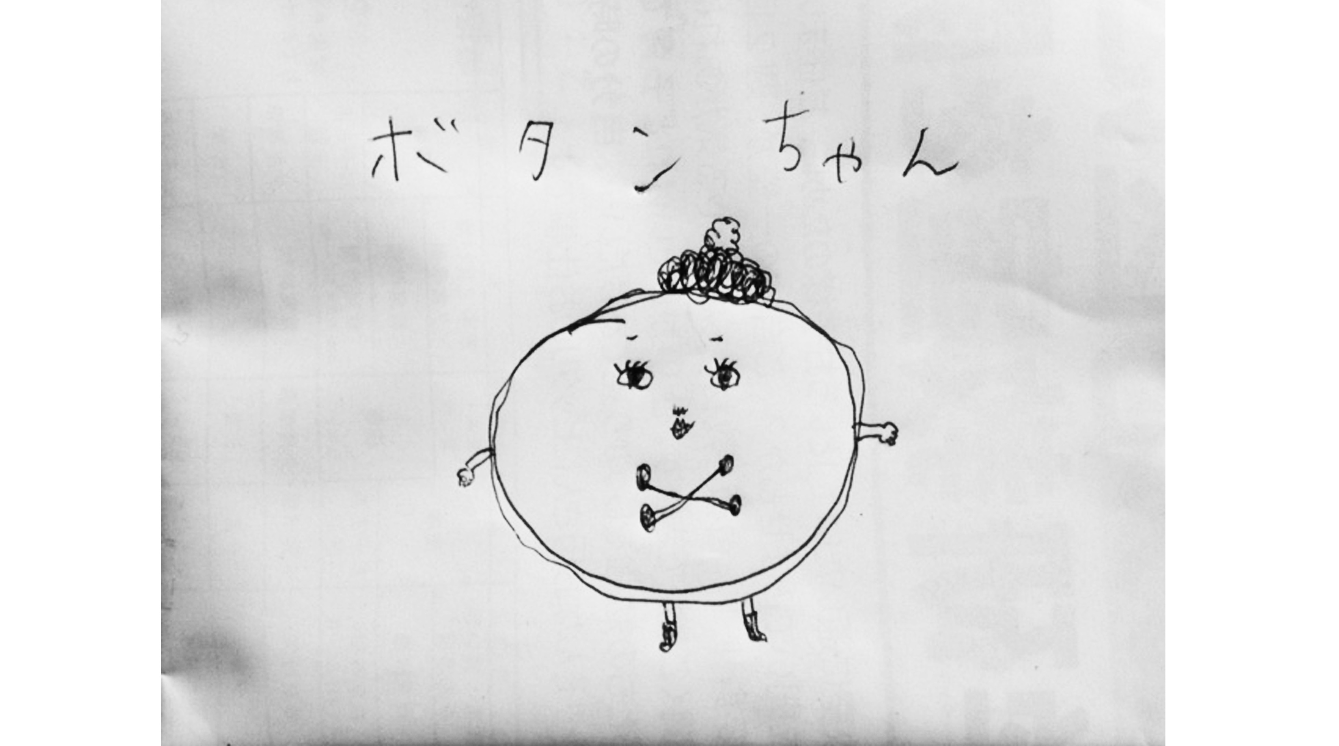 ↓そして集めたボタンを入れた袋に描かれたキモカワなぼたんちゃん。