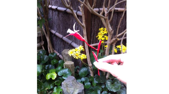 母が、ストローの袋で花を作りました。
