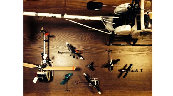 手前のヘリは室内でも楽しめるラジコンヘリです。