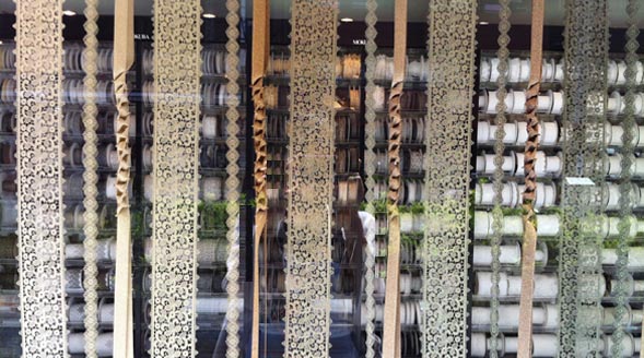 暑い季節に、涼しげなレースが、ウィンドウの中でゆれています。