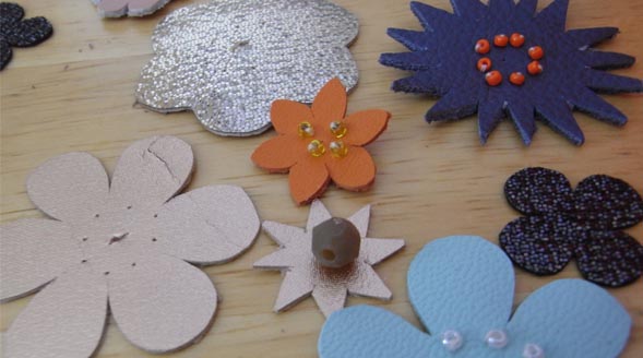 色々な色の革で花を作りました。