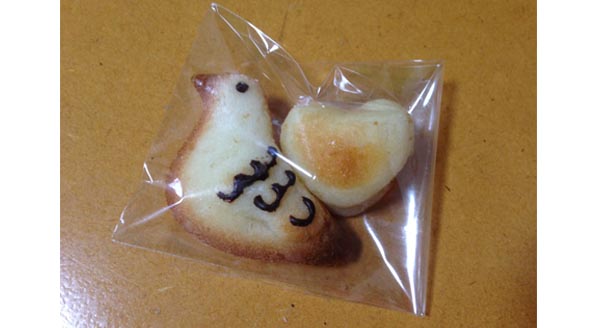 いつもは鼻血を出したカエル等、奇抜なモチーフなのですが今回は万人うけしそうなフィナンシェ。