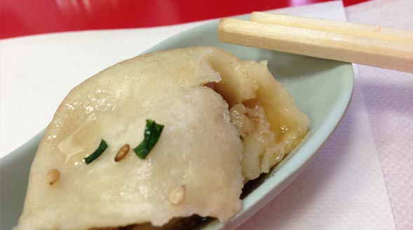 焼き小龍包は、通常の小籠包と、おやきの間のような食べ物です。