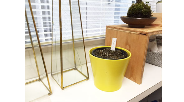 一昨年事務所の引っ越し祝いにいただいた、立派なサボテンが、いつのまにやら小さくしぼんでしまったので、南無しました。 その跡地に、せめてグリーンを育てたい…!と思い、種を撒きました。