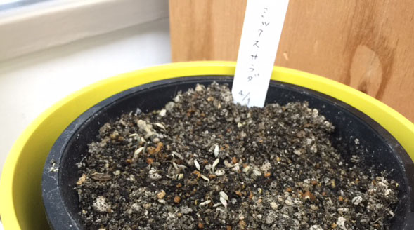 ちなみに「ミックスサラダ」を育てています。 大きくなったら、ランチの添え物として、いただこうと思っています(邪)