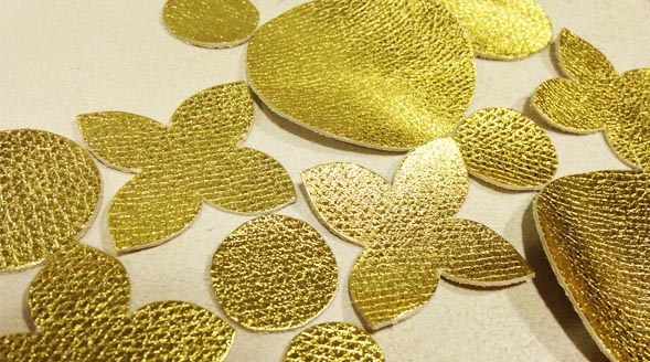 本日は、クラッチバッグにつける飾りの革をカットしました。