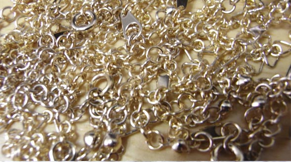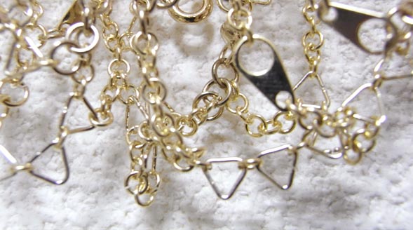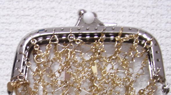 丸カンやネックレスの留め具や、イヤリングの金具等をひとつずつペンチで繋げて、ガマグチにしています。