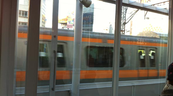 そんな窓越しに、すごい勢いで真近を電車が通りすぎてゆく。