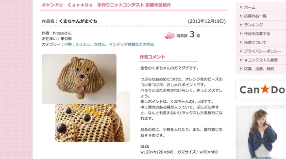 ただ今コンテスト参加中です☆ よかったら、「くまちゃんのがまぐち」に一票入れてくだ [...]