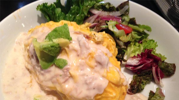 ランチにオムライスを食べました。 チキンライスが卵でくるんであって、上にホワイトソ [...]