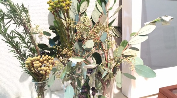 家にお花をいけました。 ユーカリを中心に、ポイントで実ものを活けまし [...]
